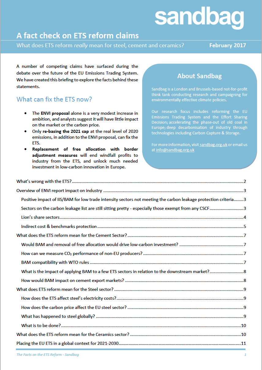 As alternative facts fly around the European institutions as the ETS reform process comes to a close, Sandbag looks at the truth on what the ETS reform might mean for industry. We focus especially on the cement, steel and ceramics sectors.
